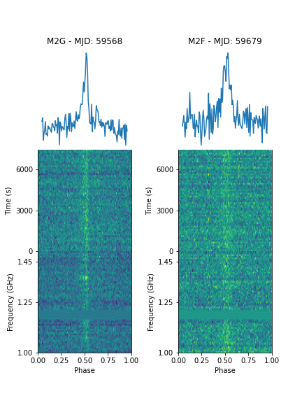 图1:新发现毫秒脉冲星双星M2F和M2G的信号图像。